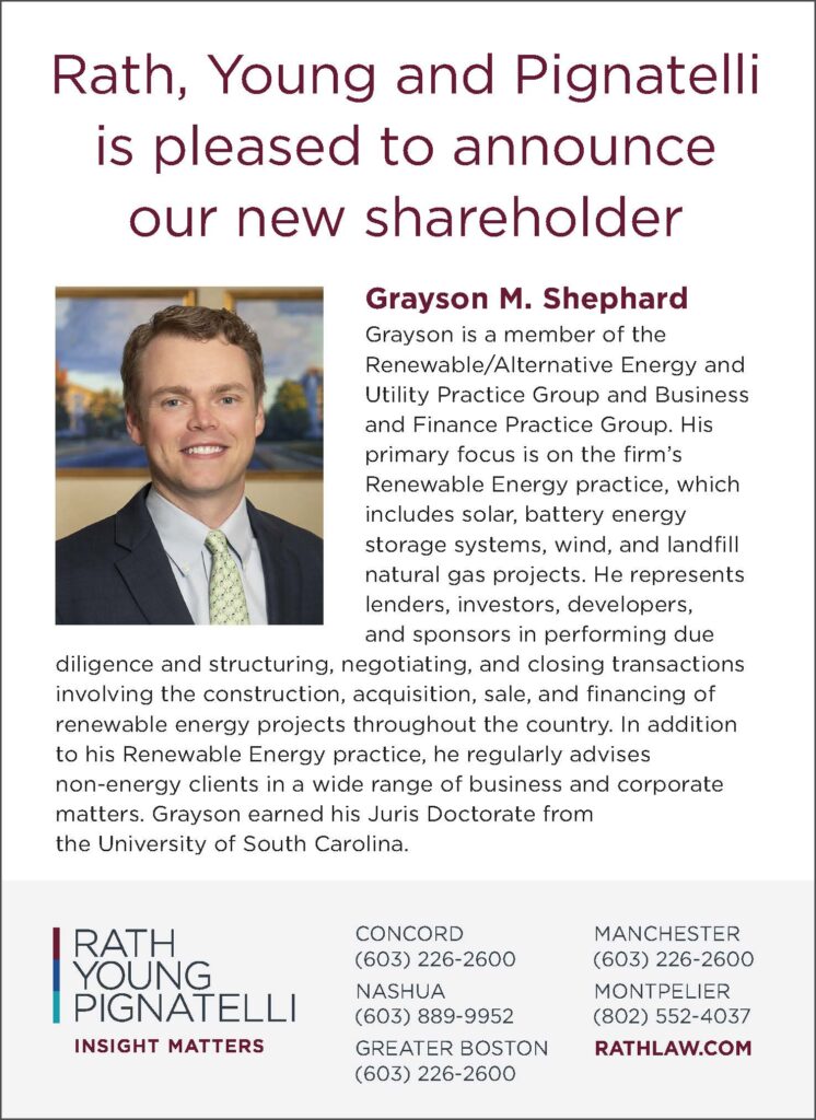Rath, Young and Pignatelli, P.C. is pleased to announce the new addition to our Shareholder team